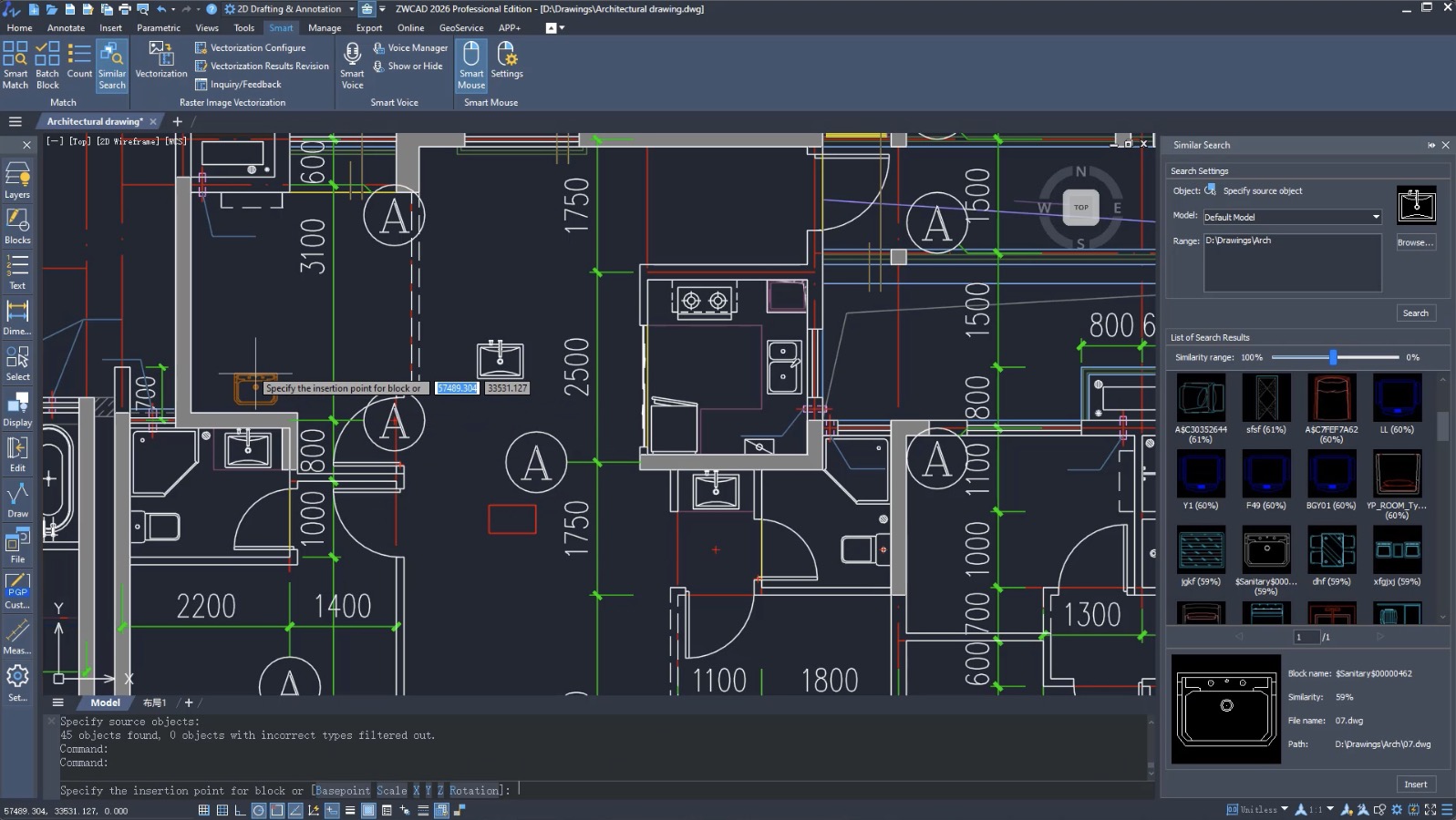 Căutați blocuri similare în fișierele locale pe baza unei grafice specificate, simplificând reutilizarea datelor istorice ale blocurilor și economisind timp.